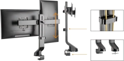 Suportul susține monitoare și televizoare de la 17" până la 27" și diverse branduri, garantând posibilități largi de utilizare.