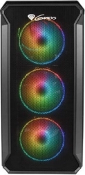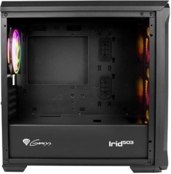 Carcasa PC compactă GENESIS Irid 503 ARGB V2 combină flux de aer excelent, 4 ventilatoare ARGB silențioase de 120 mm și panou lateral din sticlă securizată într-un design elegant. Oferă panou cu USB 3.0, suport pentru radiator de până la 240 mm, management facil al cablurilor și spațiu pentru SSD și HDD – o bază ideală pentru un sistem de gaming sau de lucru stilat.