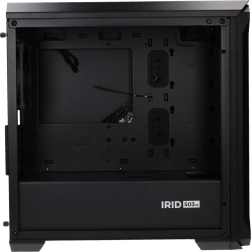 Carcasa Genesis Irid 503 V2 are un panou frontal perforat și panou lateral din sticlă securizată transparentă. Împreună cu cele două ventilatoare Genesis Oxal 120, asigură o circulație excelentă a aerului.