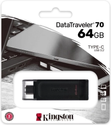 Kingston DataTraveler 70 este un stick flash practic cu conector USB‑C, ideal pentru laptopuri, tablete și smartphone‑uri. Datorită standardului USB 3.2 Gen 1 gestionează rapid copierea documentelor, fotografiilor și videoclipurilor, iar capacitatea de 64 GB acoperă utilizarea cotidiană.