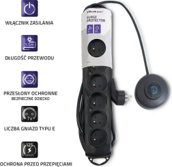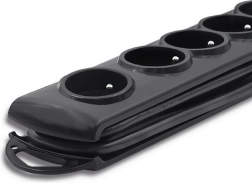 Designul în clasicul negru îmbină simplitatea cu eleganța. Corpul prelungitorului permite înfășurarea excesului de cablu și oferă posibilitatea de montare pe mobilier pentru un spațiu de lucru mai curat. Siguranța este asigurată de protecția la supratensiune cu varistor, obturatoare pentru copii în fiecare priză și material PP ignifug.