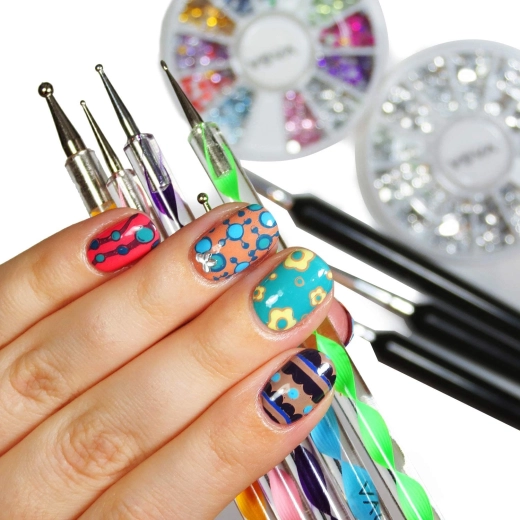 Fiecare dintre cele cinci sonde are un design colorat unic, care adaugă bucurie fiecărei manichiuri.