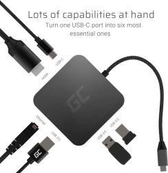 Adaptor, adaptor, USB-C HUB Green Cell 6 în 1 (USB 3.0 HDMI Ethernet USB-C) pentru Apple MacBook, Dell XPS, Asus ZenBook și altele