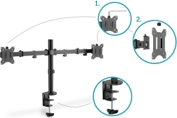 Suportă monitoare de la 15" până la 32" cu VESA 75/100 și poate susține până la 8 kg pe monitor.<><> <> <>