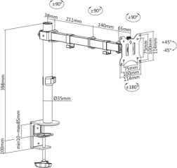 Suportul pentru monitor oferă o opțiune excelentă de setare individuală a ecranului pentru o ergonomie optimă. Este potrivit pentru monitoare de dimensiuni 15"-32" cu o capacitate maximă de 8 kg.