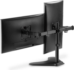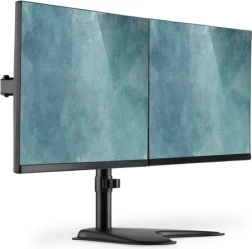 Îmbunătățește-ți spațiul de lucru cu acest suport ergonomic dublu pentru monitoare, care oferă opțiuni largi de personalizare. Permite controlul complet al poziției monitoarelor pentru o mai bună sănătate și confort.