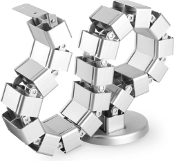 Construcția articulată se comprimă și se extinde lin odată cu mișcarea mesei, astfel încât cablurile rămân mereu protejate și nu se încâlcesc.