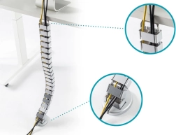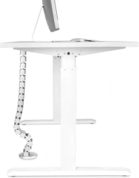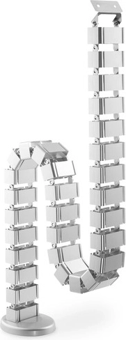 Această mască elastică pentru cabluri, în formă de „coloană/coloană vertebrală”, ascunde elegant și organizează cablurile de la podea până la blatul mesei. Datorită construcției modulare, îi puteți scurta sau prelungi ușor lungimea în funcție de înălțimea mesei, până la 130 cm. Baza ponderată menține spirala stabilă pe podea, în timp ce elementele flexibile se comprimă lin la coborârea mesei reglabile pe înălțime.