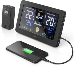 Această stație meteo digitală este ideală pentru oricine dorește informații meteo precise direct acasă. Este echipată cu un afișaj color unde puteți urmări atât temperatura și umiditatea interioară cât și exterioară, fazele lunii și presiunea atmosferică.