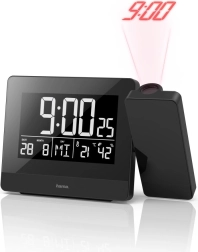 Bucurați-vă de confort maxim la citirea orei chiar și în mijlocul nopții. Proiectorul rotativ cu posibilitate de rotație de 360° proiectează ora pe tavan sau perete exact acolo unde aveți nevoie. Controlul radio DCF cu sincronizare automată asigură ora precisă, iar fusul orar poate fi ajustat manual la nevoie.