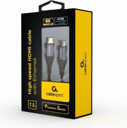 Cablu HDMI fiabil pentru 4K UHD la 60 Hz, cu lungimea de 7,5 m. Oferă transfer rapid de imagine și sunet, conectori placați cu aur pentru semnal stabil și împletitură textilă rezistentă cu conectori metalici pentru o durată de viață îndelungată. Compatibil cu toate dispozitivele HDMI.