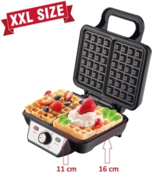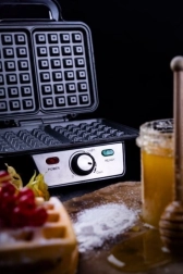 De mult am înțeles că mâncarea pregătită acasă este mult mai sănătoasă și mai bogată în nutrienți. În era alimentelor procesate, care ni se oferă la tot pasul, acest lucru este valabil și pentru dulciuri. Aparatul compact de făcut vafe, cu putere de 1600 W și nivel ajustabil de rumenire, este un dispozitiv interesant care ne permite să pregătim gustarea preferată din produse proaspete și sigure! În plus, poți experimenta și adăuga în aluat condimentele tale preferate, precum zahăr vanilat sau scorțișoară, ceea ce va accentua gustul și aroma vafelor. Este, de asemenea, o modalitate de a pregăti și delicii sărate. Prin alegerea anumitor toppinguri decizi dacă vrei să te răsfeți culinar (gem, ciocolată, frișcă) sau să fii atent la calorii (frișcă light, nuci, fructe proaspete)! O astfel de gustare va mulțumi atât marii, cât și micii iubitori de dulciuri și produse de patiserie calde!