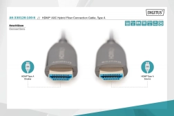 Acest cablu, datorită combinației de fibre de cupru și optice, elimină interferențele electromagnetice, asigurând calitatea fără pierderi a transferului pe întreaga lungime a cablului. Este potrivit pentru utilizarea în casă, săli de conferințe și clădiri. Cu instalarea plug and play, utilizarea sa este foarte ușoară. Cablu susține mai multe standarde, inclusiv HDMI 2.1, HDCP 2.2 și HDR. În domeniul sunetului, susține formate precum ARC, DTS-HD Master Audio și Dolby TrueHD.