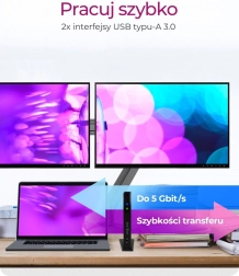 Stația de andocare desktop Icy Box DisplayLink este soluția perfectă pentru extinderea capabilităților laptopului sau computerului dvs. de birou. Cu ajutorul ei puteți conecta până la 11 dispozitive și interfețe suplimentare, inclusiv HDMI de mare viteză pentru afișare excelentă pe două monitoare simultan, cu rezoluție de până la 1980x1080. Poziționarea flexibilă, fie verticală, fie orizontală, permite o adaptare ușoară spațiului dvs. de lucru.
