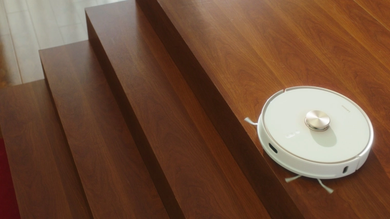 Aspiratorul robotizat Lenovo T1S este echipat cu senzori avansați care permit curățarea sigură de-a lungul marginilor și previn căderea de pe scări.