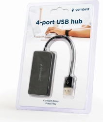 Hub USB negru cu patru porturi permite conectarea ușoară a mai multor dispozitive simultan. Cu un transfer rapid de date USB 2.0 de până la 480 Mbps, este ideal pentru o muncă eficientă.