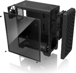 Această carcasă PC modernă îmbină designul curat cu funcționalitatea bine gândită. Panoul lateral din sticlă călită de 4 mm oferă o vedere panoramică asupra componentelor, iar accesul facil este asigurat de șuruburile manuale. Datorită interiorului spațios, puteți monta comod plăci grafice performante și coolere de procesor înalte.