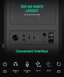 - Răcire: poziții frontale pentru 120 mm, echipată cu 3× 120 mm