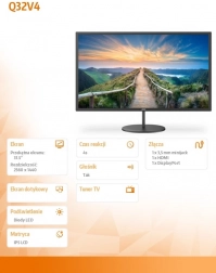 Monitorul AOC Q32V4 vine cu un ecran mare de 31,5 inci, care oferă o rezoluție uimitoare și calitate a imaginii. Datorită tehnologiei IPS vă veți bucura de culori vii și unghiuri excelente de vizualizare. Este potrivit atât pentru muncă de birou, cât și pentru divertisment multimedia.