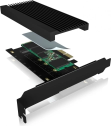 Extensie PCIe cu suport pentru M.2 SSD NVMe oferă conectivitate de mare viteză și răcire eficientă datorită radiatorului integrat.