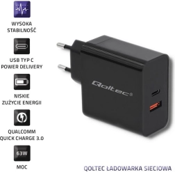 2Încărcătorul Qoltec este echipat cu cea mai modernă tehnologie Power Delivery, care se adaptează dispozitivului conectat, setând tensiunea și curentul optim. Datorită portului USB-C oferă versatilitate și o putere de 63W. Cu tehnologia QUALCOMM QUICK CHARGE reduce semnificativ timpul de încărcare în comparație cu încărcătoarele standard.
