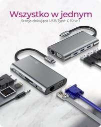 Transformă un singur port USB‑C într-un hub de conectivitate versatil. Această stație de andocare ICY BOX suportă conectarea simultană a monitoarelor prin HDMI și VGA, transfer rapid de date prin USB 3.0 și conexiune cablată stabilă datorită RJ45 gigabit. Ideală pentru lucru în deplasare sau la birou.
