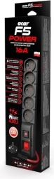 Acar F5 Power este versiunea de 16 A, ranforsată, a popularei benzi de protecție din familia acar-AXON. Pe o lungime de puțin sub 33 cm oferă cinci prize cu împământare într-o execuție practică și rezistentă. Întrerupătorul de rețea ranforsat este conceput să reziste la impulsuri de curent ridicate care apar, de exemplu, la pornirea PC-urilor de birou sau a alimentatoarelor pentru laptop.