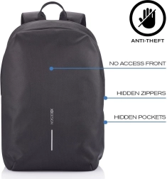 Rucsacul Bobby Soft, în varianta neagră, oferă protecție de top datorită construcției sale antibuzunar, accesibilă doar din zona spatelui. Fermuarele și buzunarele ascunse, protejate RFID, asigură securitate suplimentară pentru obiectele personale.
