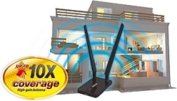 Cu cablul reglabil, este posibil să îmbunătățiți recepția. Datorită cablului de extindere inclus, adaptorul poate fi amplasat liber pentru a asigura semnal optim. Antenele detașabile cu câștig mare de 5 dB permit o extindere a razei semnalului de până la de 10 ori comparativ cu adaptoarele obișnuite.