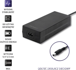 Sursă de alimentare de birou QOLTEC fiabilă pentru alimentarea în siguranță a unei game largi de dispozitive. Oferă 24 V, 3 A și o putere de 72 W cu conector 5,5 × 2,5 mm. Se remarcă prin eficiență ridicată, consum redus de energie și dimensiuni compacte. Pentru siguranță maximă este echipată cu protecție la supratensiune, supraîncărcare, scurtcircuit și supraîncălzire.