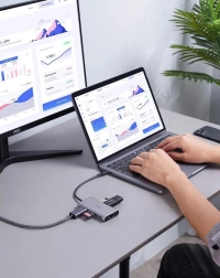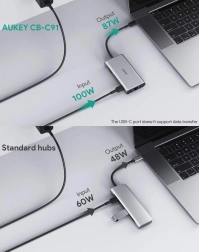 Aukey CB-C91 oferă o viteză de transfer de date de 5 Gb/s, iar datorită interfeței HDMI trimiterea unei rezoluții de până la 4K @ 30 Hz către un ecran conectat nu va fi nicio problemă. Portul Ethernet Gigabit susține viteze de rețea de până la 1.000 Mb/s. Poți, de asemenea, să îți încarci fără probleme dispozitivele preferate. Datorită tehnologiei Power Delivery, laptopul tău poate fi alimentat cu până la 100 W, chiar și atunci când folosești alte funcții ale hub-ului. Încărcarea nu a fost niciodată atât de rapidă; te vei obișnui cu acest standard ridicat de funcționare încă din prima zi, iar Aukey CB-C91 va deveni pentru tine un sprijin neprețuit (și de neînlocuit!).