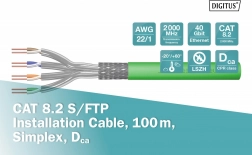 Cablul de instalare DIGITUS CAT 8.2 este conceput pentru rețele de nouă generație foarte rapide și stabile. Datorită construcției 4×2× AWG 22/1 (conductor solid), oferă calitate excelentă a semnalului și frecvențe de transmisie de până la 2000 MHz. Ecranarea dublă S/FTP (împletitură + folie pe perechi) suprimă eficient interferențele și asigură fiabilitate chiar și în medii solicitante.