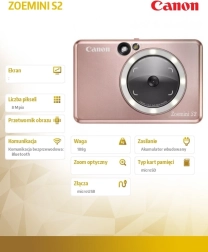 Canon Zoemini S2 este partenerul ideal pentru toți iubitorii de fotografie. Acest aparat foto compact îmbină un design modern cu funcții practice, precum oglinda pentru selfie și lumina LED circulară pentru autoportrete perfecte. Fotografiile instantanee în format 5 × 7,6 cm sunt gata de împărtășit sau lipit datorită spatelui autoadeziv.