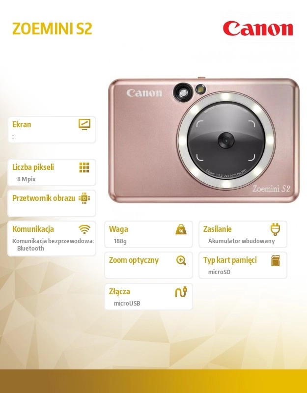 Dispozitivul oferă conectivitate wireless prin Bluetooth 5.0 și NFC, permițând conectarea ușoară la smartphone-uri și tablete. Cu ajutorul aplicației Canon Mini Print poți adăuga efecte creative, filtre sau rame. Folosește tehnologia de tipărire ZINK™ fără cerneală, care este ecologică și produce ieșiri rezistente la apă.