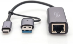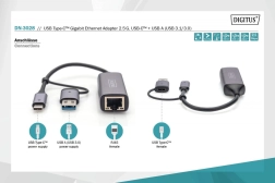 Extindeți posibilitățile laptopului sau computerului dvs. de birou cu adaptorul Digitus USB-C și USB-A pentru RJ45 2.5 Gigabit Ethernet, care oferă conectivitate la internet cu viteze de până la 2,5 Gbps și suportă Plug and Play.