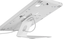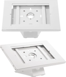 Un suport de tabletă elegant și fiabil, potrivit atât pentru utilizarea temporară cât și cea permanentă, oferă o construcție metalică închisă pentru siguranță și durabilitate. Acest suport permite ajustarea poziției tabletei din orizontală în verticală, ideal pentru a adapta conținutul nevoilor dumneavoastră.