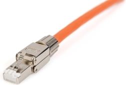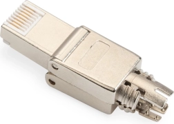 Conectorul RJ45 DIGITUS Cat 6A este conceput pentru instalare rapidă direct în teren – fără scule speciale și cu timp minim. Carcasa metalică ecranată protejează împotriva interferențelor și asigură transmisie stabilă până la 10GBase‑T cu lățime de bandă 500 MHz. Datorită marcajului color EIA/TIA 568 A/B, cablarea este intuitivă și fără erori.