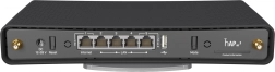 Carcasa include mai multe porturi Gigabit Ethernet pentru conexiuni cablate rapide, un port USB pentru partajare și indicatori de stare pentru control facil al funcționării. Designul compact cu ventilație eficientă asigură funcționare silențioasă și fiabilă.