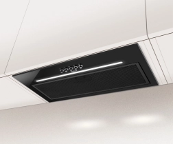 Hota incorporată de culoare neagră completează perfect interioarele moderne ale bucătăriilor. Aspectul său discret se potrivește ușor cu dulapurile superioare.
