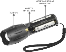 Alimentare: 3x AAA/ R03 sau 1x Li-ion 18650 (nu este inclusă în pachet)