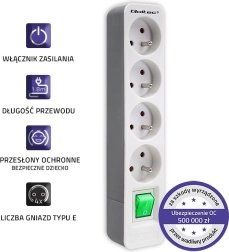 Această prelungire este proiectată pentru a vă îndeplini nevoile zilnice în locuință sau birou, aducând în același timp eleganță și simplitate. Este disponibilă în varianta cu 4 prize și lungime de 1,8 metri, asigurând un acces suficient. Intrerupătorul Quick Switch iluminat facilitează utilizarea și mai mult, permițând opritul și pornitul rapid al dispozitivelor cu o singură atingere.