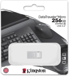 DataTraveler Micro are o carcasă plată, de înaltă calitate, din metal, cu un inel încorporat pentru chei, care permite conectarea discretă în portul USB și îl protejează împotriva obstacolelor. Cu USB 3.2 Gen 1 atinge viteze de citire de până la 200 MB/s.