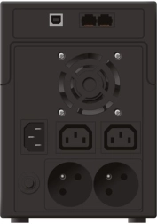 UPS-ul este echipat cu două prize 230 V (Schuko) și două ieșiri IEC pentru conectarea ușoară a mai multor dispozitive. Protecția RJ11/RJ45 (IN/OUT) protejează liniile telefonice și de date împotriva supratensiunilor, iar prin interfața USB dispozitivul poate fi monitorizat și administrat. O alegere ideală pentru o alimentare fiabilă acasă și în mediul de birou mic.