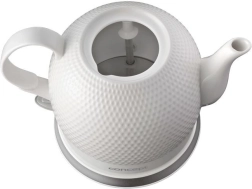 Ceramica albă cu model în relief are un aspect atemporal și se potrivește atât bucătăriilor moderne, cât și celor tradiționale. Fierbătorul poate fi servit direct pe masă ca un ceainic.