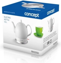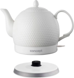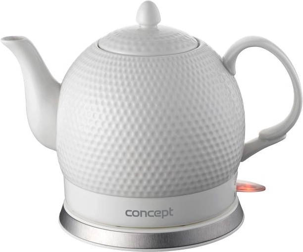 Fierbătorul electric ceramic CONCEPT Golf impresionează prin designul alb curat cu o structură elegantă în relief. Aspectul tradițional de ceainic este completat de funcționalitate modernă: încălzire rapidă, control comod și funcționare sigură. Ceramica reduce zgomotul și păstrează căldura mai mult timp, astfel încât să vă bucurați de băutura fierbinte la temperatura ideală.