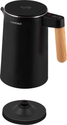 Construcția specială cu perete dublu menține suprafața fierbătorului rece, în timp ce corpul interior din inox încălzește eficient apa. Mai puține riscuri de arsuri și o izolație termică mai bună.
