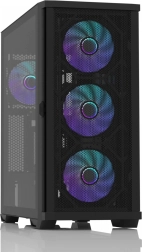 Carcasa este optimizată pentru flux maxim de aer – panourile mesh și ventilația bine gândită accelerează evacuarea căldurii din componente. Suportul pentru sincronizare RGB adresabilă și splitterul ARGB 1‑la‑2 inclus simplifică cablarea și extinderea iluminării.