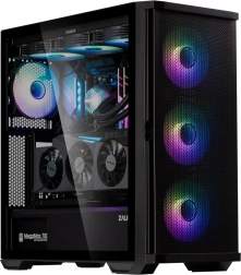 ZALMAN Z10 Duo este o carcasă mid‑tower modernă proiectată pentru răcire eficientă și un aspect impresionant. Cvartetul de ventilatoare Infinity Mirror ARGB de 120 mm oferă nu doar un flux de aer puternic, ci și efecte luminoase atrăgătoare, vizibile prin panoul lateral din sticlă securizată. Datorită hubului ARGB (3 pini, 5 V) cu buton de control superior, schimbi ușor modurile de iluminare sau sincronizezi efectele cu placa de bază prin headerul ARGB 5V.