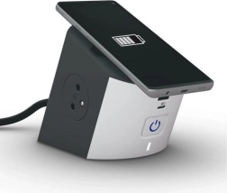 Acest cub de alimentare multifuncțional combină prizele practice de 230 V, încărcarea rapidă USB și platforma wireless Qi într-un singur corp compact. Ideal pentru telefoane (chiar și cu husă), tablete și dispozitive electronice mici, integrându-se elegant în orice birou sau locuință modernă.