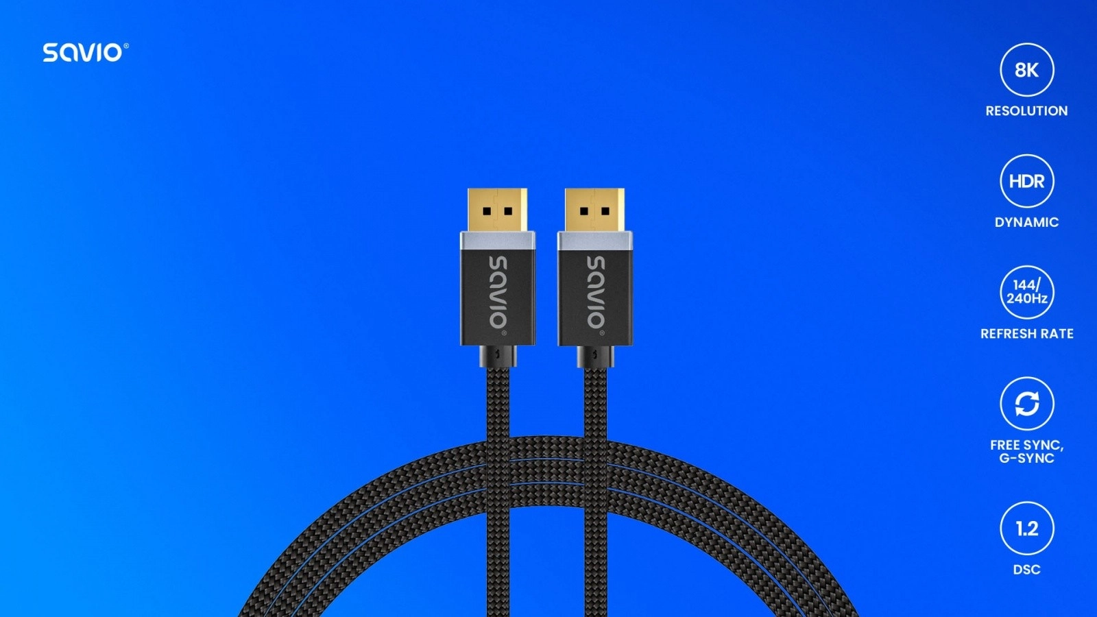 Conectați computerul și monitorul fiabil și fără compromisuri. Acest cablu DisplayPort 1.4 (tată–tată) cu lungimea de 1 metru oferă lățime de bandă ridicată cu suport pentru 8K la 60 Hz și compatibilitate inversă cu DP 1.3/1.2/1.1. Tehnologia DSC asigură compresie eficientă fără pierderi vizibile de calitate, astfel vă bucurați de imagine clară și jocuri sau lucru fluide.